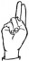 На ћирилици написано ДИНА БЕКОЊА састоји се из 10 слова [?]. Исписано ћириличном једноручном азбуком за глувонеме: